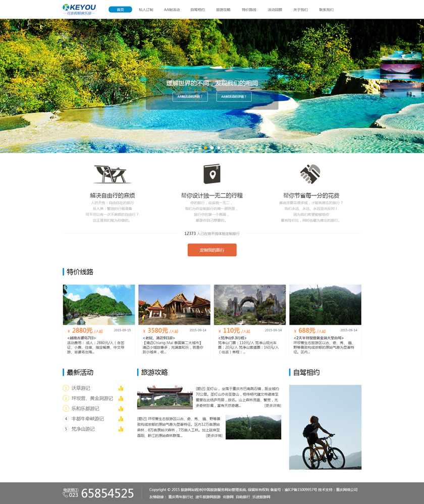 Project Description 6人游旅行网隶属于北京六人游国际旅行社有限公司。打造“为爱出行”:专为家庭,朋友,情侣间的旅行,提供私家小团精品游。打造高品质的旅行产品,解决传统跟团游和自由行存在的问题,将旅行服务做到臻善臻美。 Official website address 广西http://www.keyoujq.com I want to share